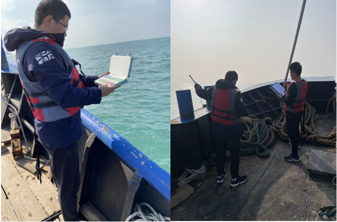 此次大小潮期間12名檢測人員調(diào)用了4艘船只,按監(jiān)測方案采集檢測了水質(zhì)、生態(tài)、沉積物、漁業(yè)資源,同時安排4名檢測人員同步開展陸上潮間帶采樣檢測工作。